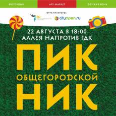 22 августа с 18.00 до 21.30 (при хорошей погоде) на площади перед Городским дворцом культуры состоится «Общегородской пикник 2019». Организаторы – отдел по молодёжной политике и интернет-портал «Сityopen».