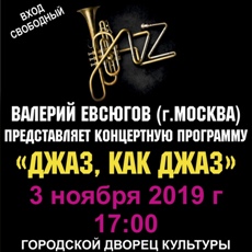 Влерий Евсюгов совместно с московскими и уфимскими музыкантами представит концертную программу, в которой прозвучат популярные джазовые композиции, латиноамериканская музыка в оригинальных аранжировках.