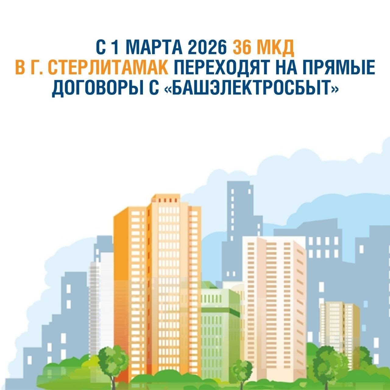 С 1 марта 2026 года жители ещё 36 многоквартирных домов переходят на прямые расчёты с гарантирующим поставщиком электроэнергии ООО «ЭСКБ» («Башэлектросбыт») в связи с прекращением действия договора с управляющей компанией ООО «УК «ГорЖилФонд». Это обеспечит прозрачность начислений и удобное обслуживание.