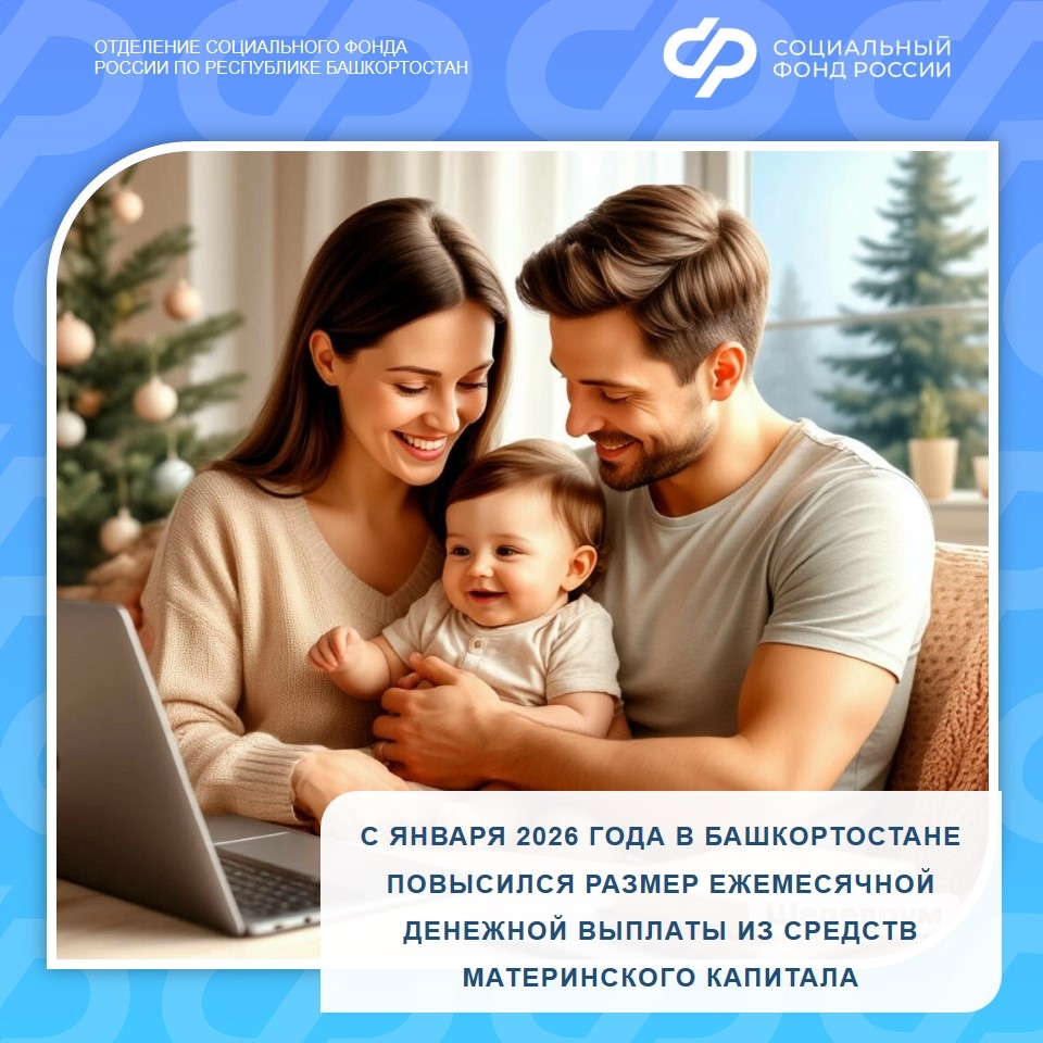 С января 2026 года Отделение Социального фонда России по Башкортостану выплачивает семьям республики ежемесячную выплату из средств материнского капитала в повышенном размере. Это связано с повышением прожиточного минимума.