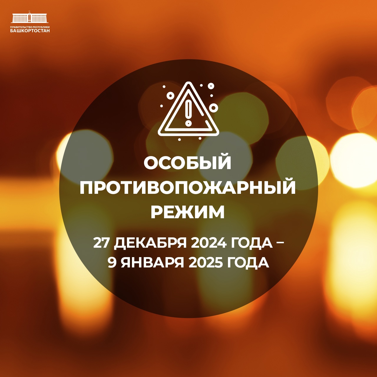⚡️С 27 декабря 2024 года по 9 января 2025 года в Башкортостане будет действовать особый противопожарный режим. Его введение направлено на обеспечение безопасности жителей республики в праздничные дни.