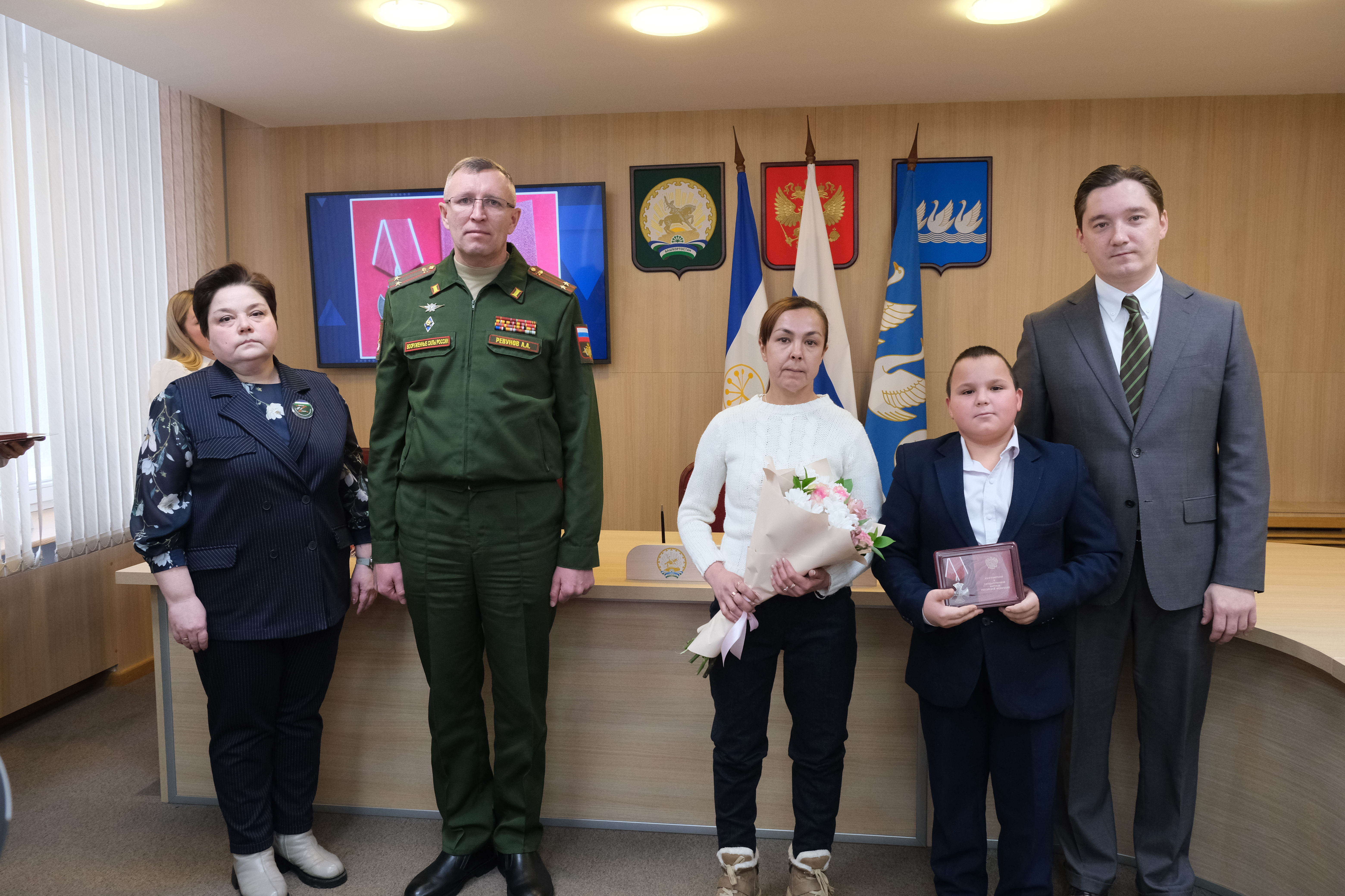 Сегодня глава администрации города Эмиль Шаймарданов, военный комиссар г.Стерлитамак и Стерлитамакского района Анатолий Ревунов и руководитель Комитета семей воинов Отечества г. Стерлитамака Янина Волочаева вручили государственные награды посмертно военнослужащим Стерлитамака, павшим на полях сражения.