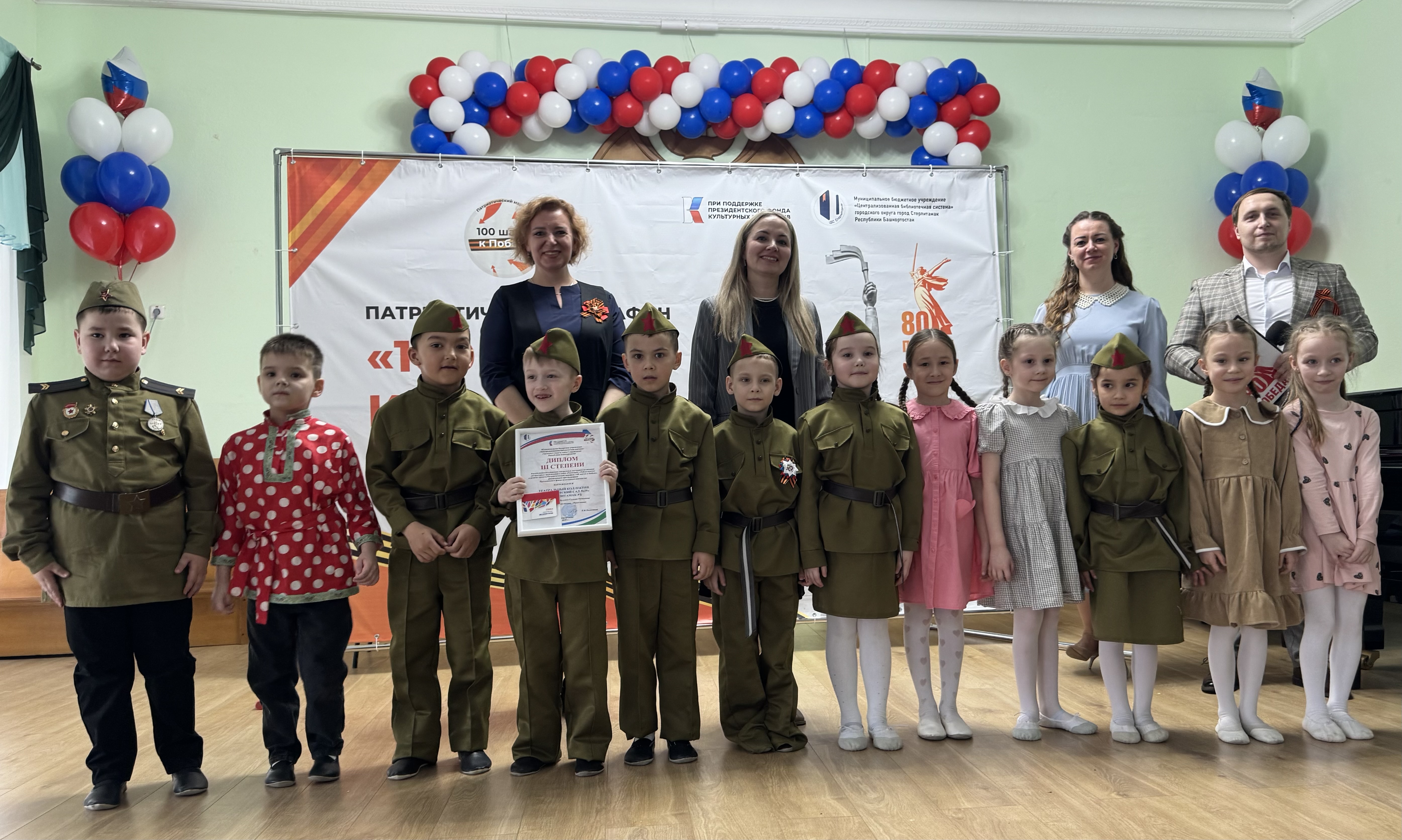 14 апреля в Стерлитамаке прошло торжественное мероприятие в рамках проекта «Патриотический марафон «100 шагов к Победе», реализуемого при поддержке Президентского фонда культурных инициатив. Участниками стали победители и призеры трех творческих конкурсов и городского турнира по интеллектуальным играм «Кубок Победы», которые были организованы Централизованной библиотечной системой.