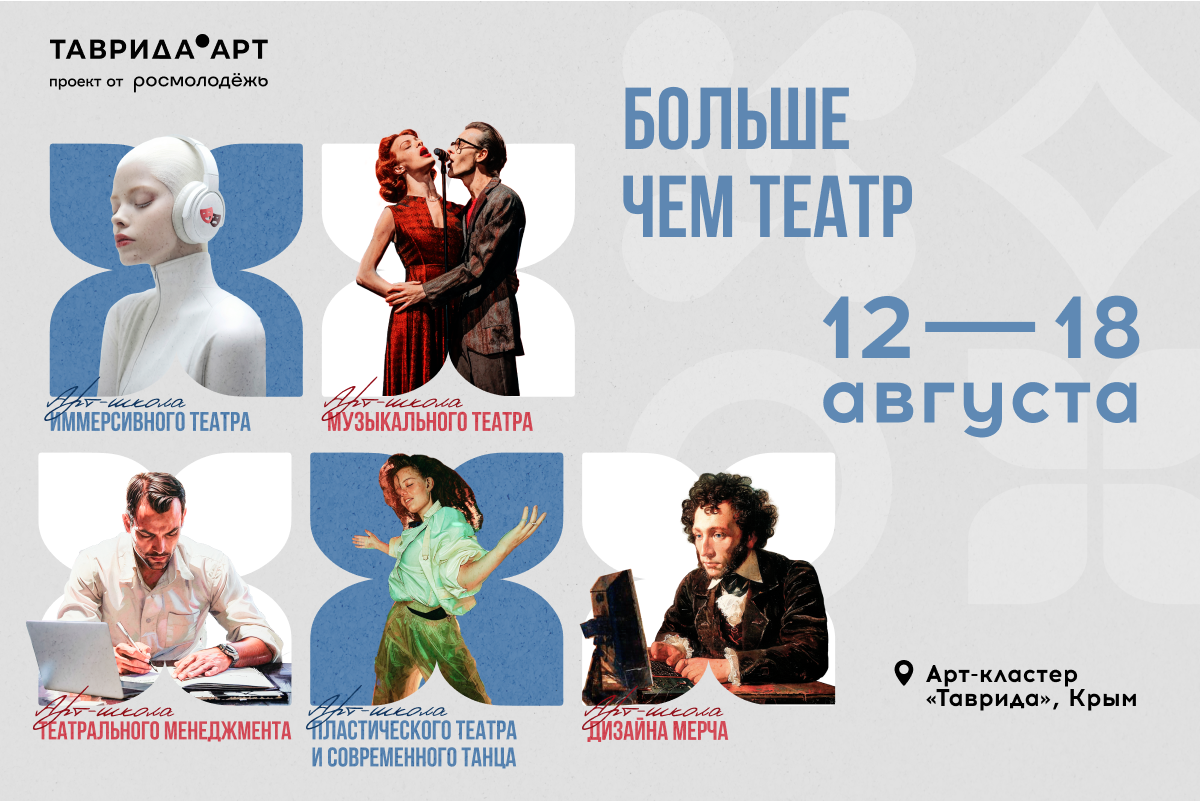 «Больше чем театр» — шестой образовательный заезд сезона 2024 года арт-кластера «Таврида» (проект Росмолодёжи). Он пройдет в Крыму с 12 по 18 августа и соберет 370 участников из разных регионов России. На площадке встретятся молодые деятели театральной индустрии и смежных направлений. Они будут исследовать возможности использования новых технологий в создании спектаклей, в том числе и музыкальных, искать точки соприкосновения пластического театра и современного танца, разработают мерч для неожиданной коллаборации. В то же время менеджеры театров будут погружаться в тонкости и особенности работы в индустрии.