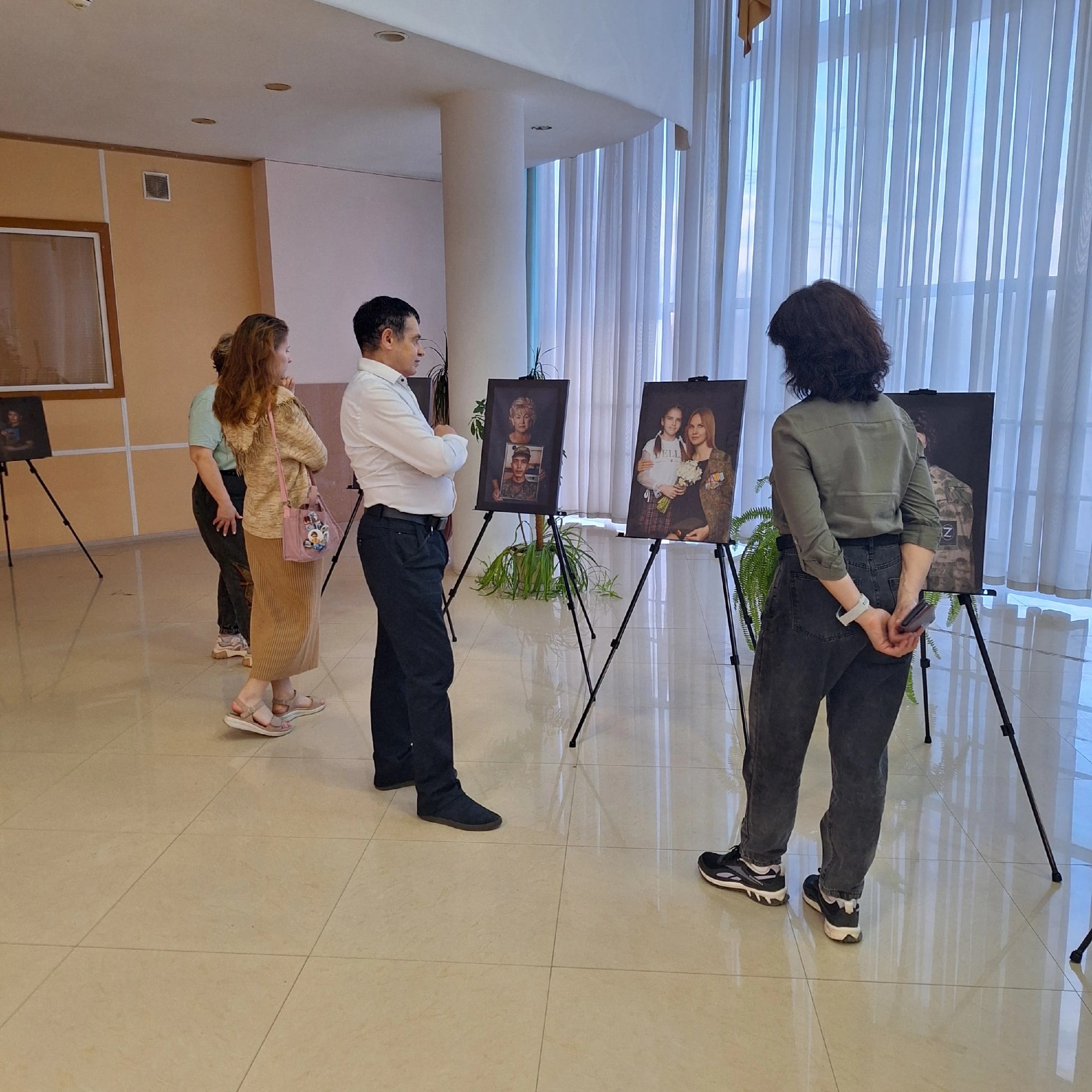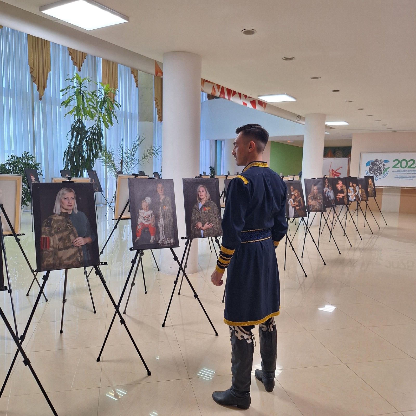 Перед началом концерта зрители смогли познакомиться с передвижной фотовыставкой «Мама Героя. Жена Героя». На ней представлены портретные фото жён и матерей наших героев – участников СВО, которые сейчас на передовой, а также тех ребят, которых уже нет с нами. Организаторы выставки - Комитет семей воинов Отечества г.Стерлитамака.
