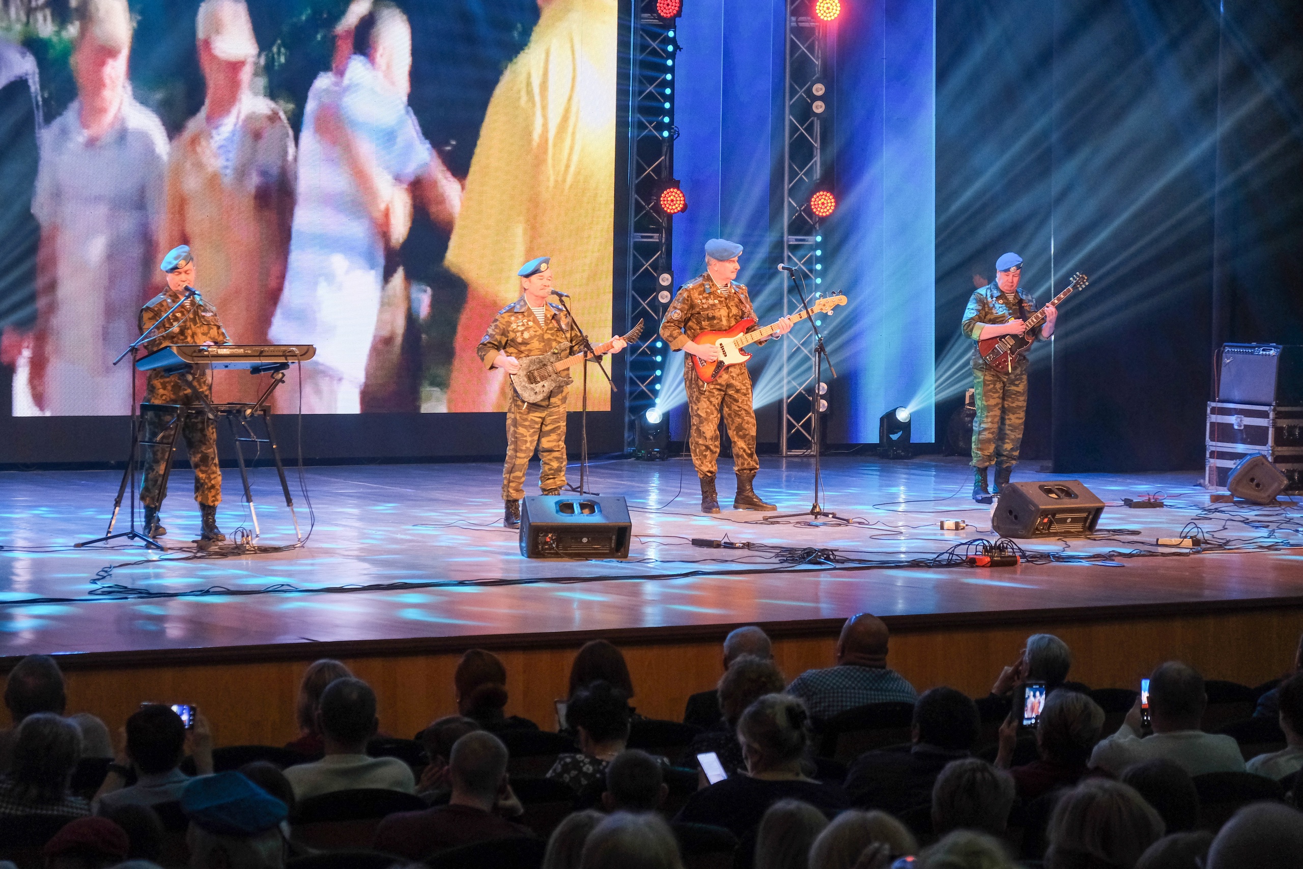 Завершающим аккордом фестиваля военно-патриотической песни стала знакомая многим «Синева» в исполнении группы «Голубые береты», которую в зале с удовольствием подхватили зрители.