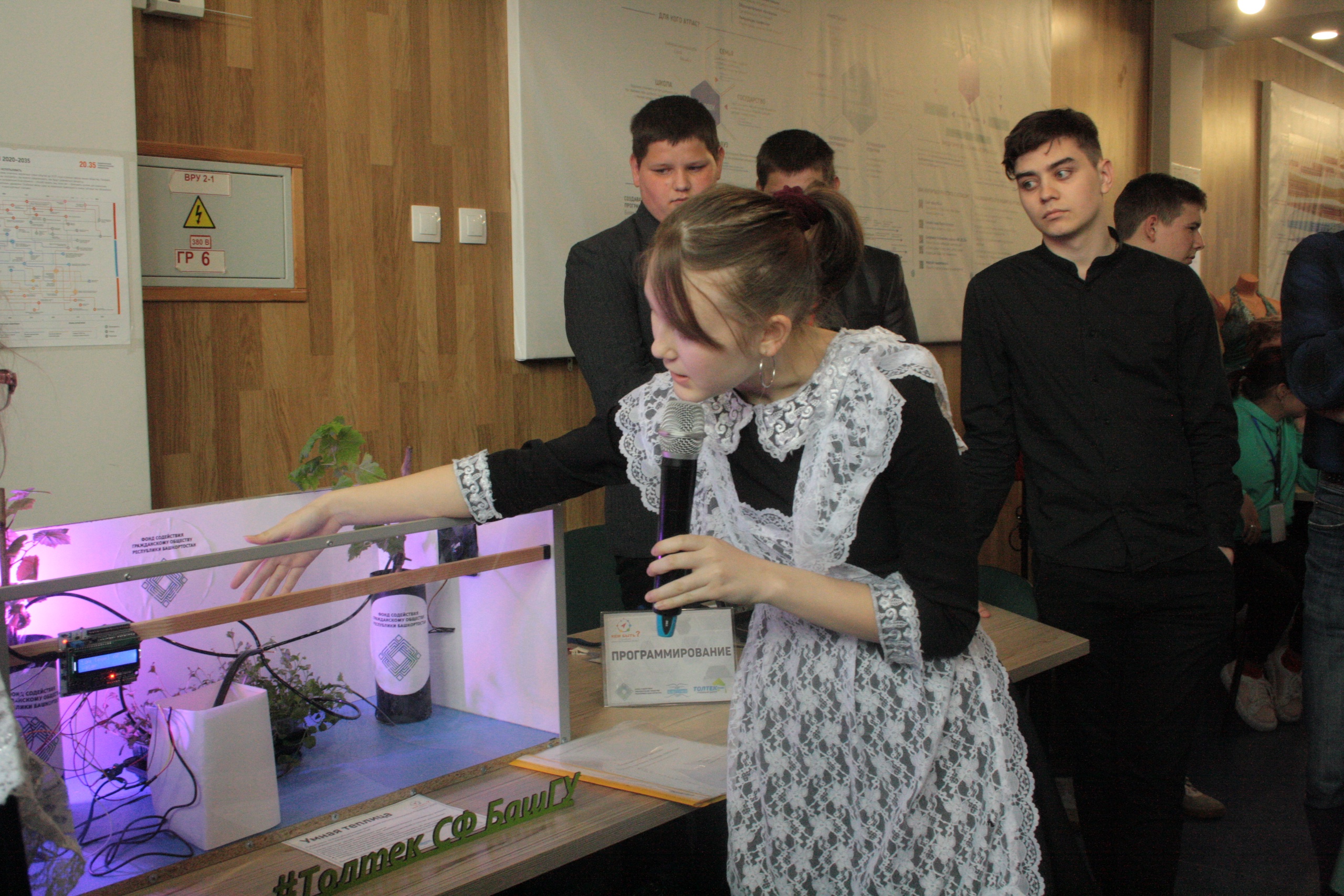 На фестивале профессий участники проекта представили свои разработки. Ученицы лицея-интерната №2 презентовали «Умную теплицу», которая победила в республиканском фестивале «РобоПром-2022». Она снимает показания влажности почвы, воздуха, измеряет температуру и давление, следит за уровнем воды в резервуаре и выводит всю важную для пользователя информацию на экран.