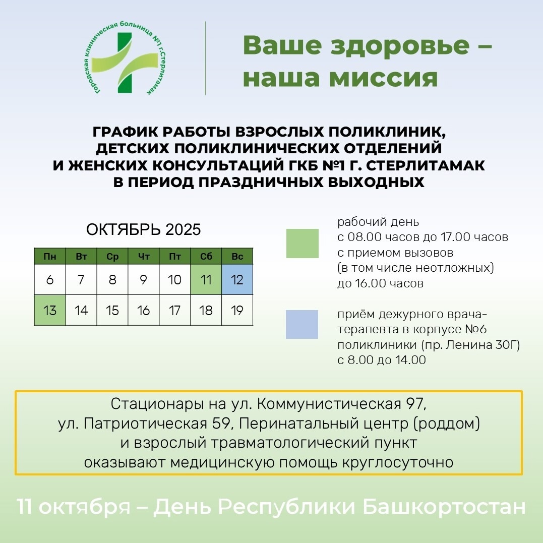 В праздничные выходные корпуса поликлиник будут работать по представленному в информационной карточке графику