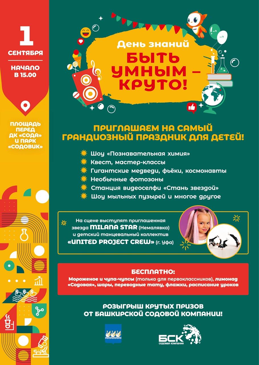 В День знаний на площади перед ГДК «Сода» и в парке содовиков состоится грандиозный праздник для детей - «Быть умным - круто!».