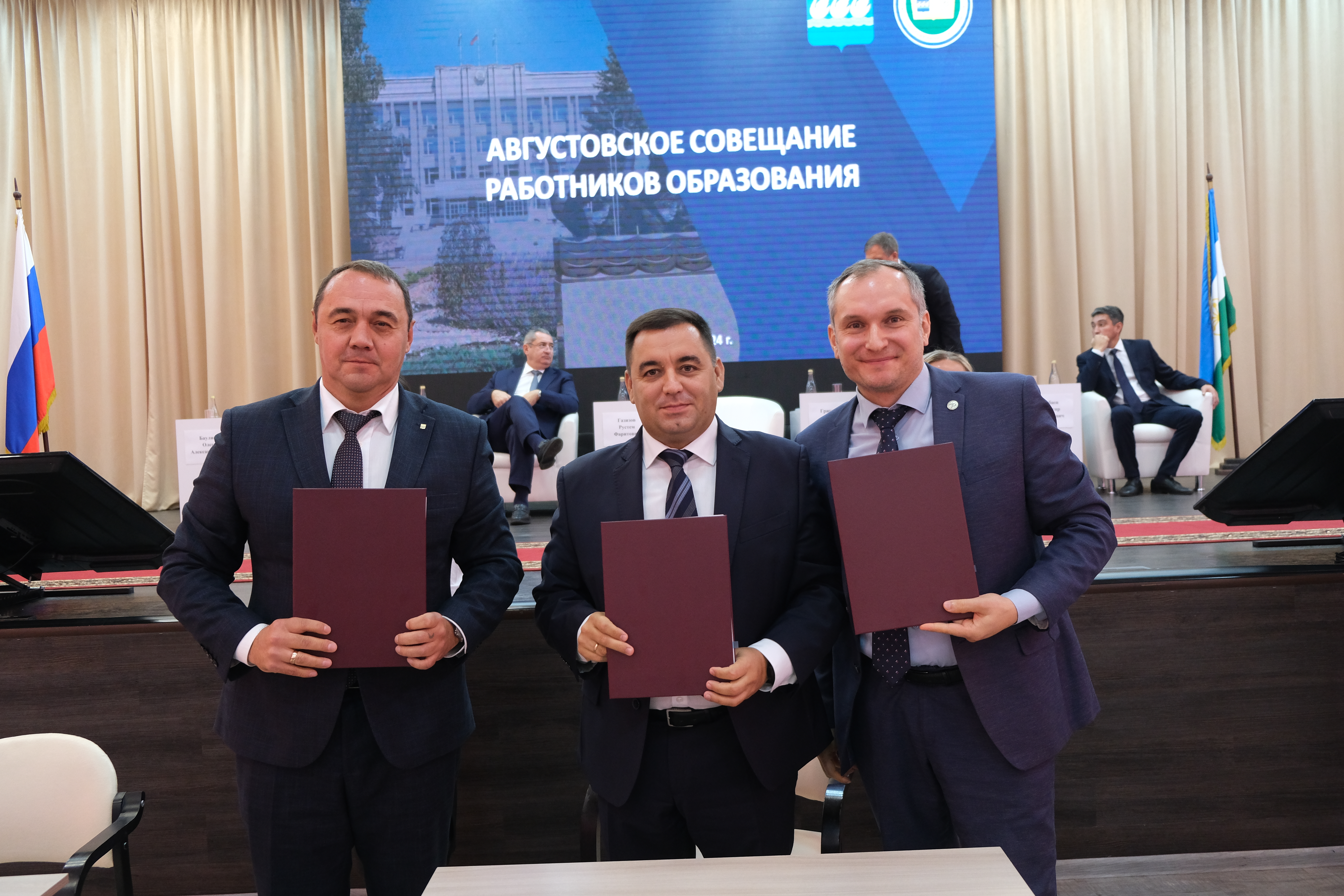 В рамках педконференции были подписаны трехсторонние Соглашения о создании профильных классов УГНТУ между администрацией Стерлитамака, УГНТУ и школами №№17, 33, лицеями №№ 1, 3, 12, лицеем-интернатом №2, гимназией №2.