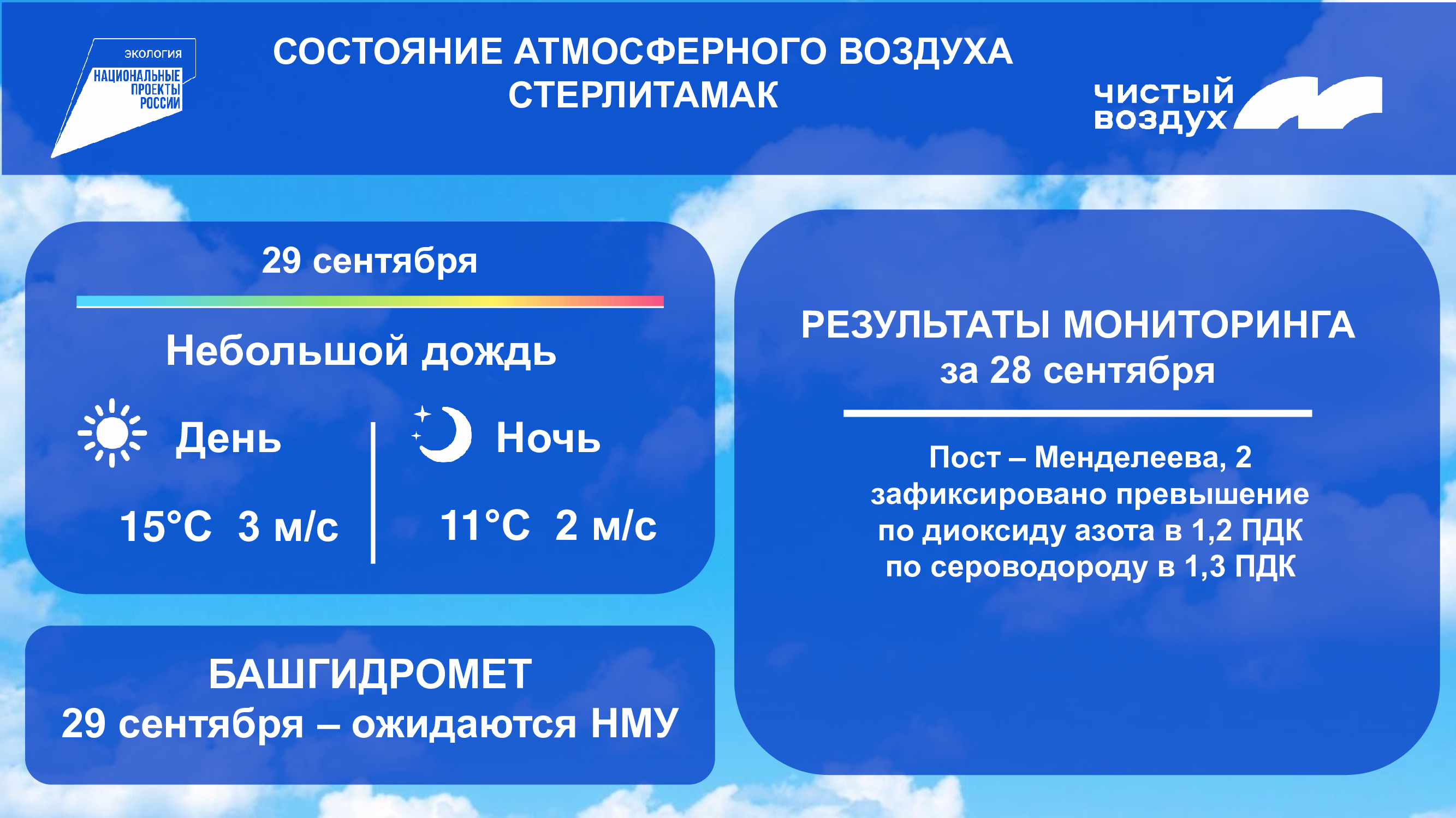 Результаты мониторинга состояния атмосферного воздуха за 28 сентября.