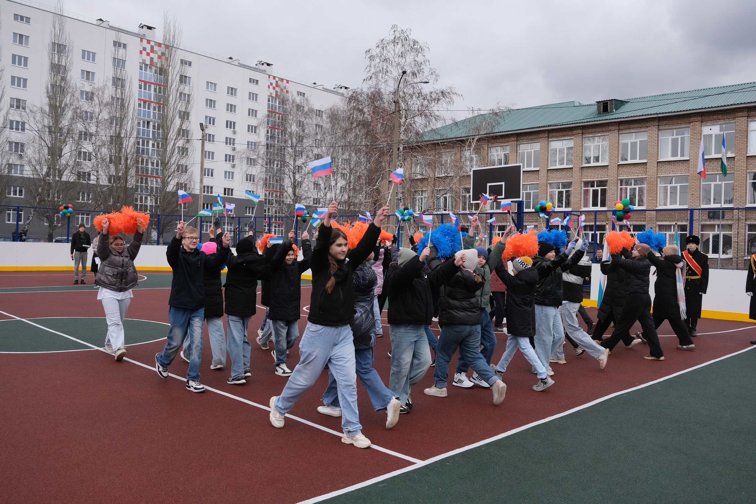 Право забить первый гол, выполнить первую волейбольную подачу и первый бросок в баскетбольное кольцо было предоставлено почётным гостям, что символично ознаменовало начало спортивной жизни на новой площадке. Завершилась церемония ярким флешмобом учащихся лицея и первым товарищеским матчем по баскетболу между командами лицея №12 и гимназии №6.